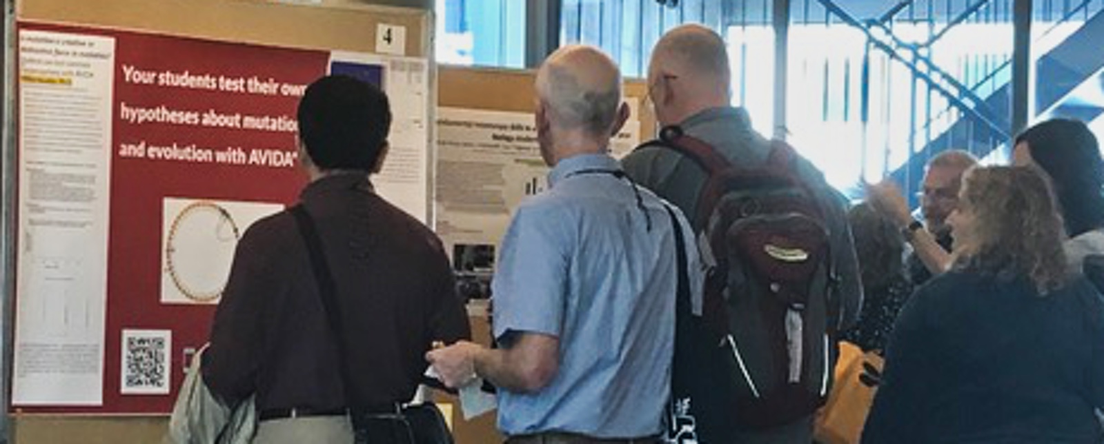 2019 June: William Beachly presented a poster on Avida-ED at a session during the AP biology reading in Kansas City and at the Association for Biology Laboratory Education in Ottawa, CA (pictured). The abstract will be published as: Beachly W. 2020. Is mutation a creative or destructive force in evolution? Article 58 In: McMahon K, editor. Advances in biology laboratory education. Volume 41. Publication of the 41st Conference of the Association for Biology Laboratory Education (ABLE). ableweb.org/volumes (once volume 41 is posted)